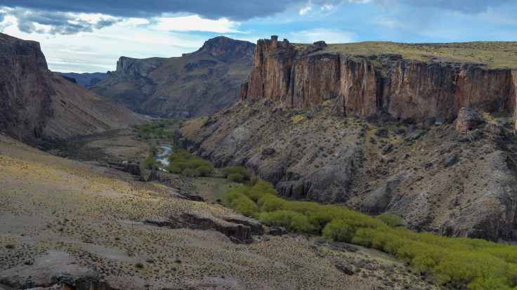Na twee dagen rondhangen rond de kust, trokken we door richting het zuiden. De uitgestrekte landschappen zijn een plezier voor het oog en de maté, een soort Zuid Amerikaanse thee die je deelt, vloeide rijkelijk op de bus terwijl er Argentijnse muziek door de boxen klonk. We gingen op weg naar het Petrified Forest, een versteend bos waar vooral de uitzichten op de omgeving imposant zijn.