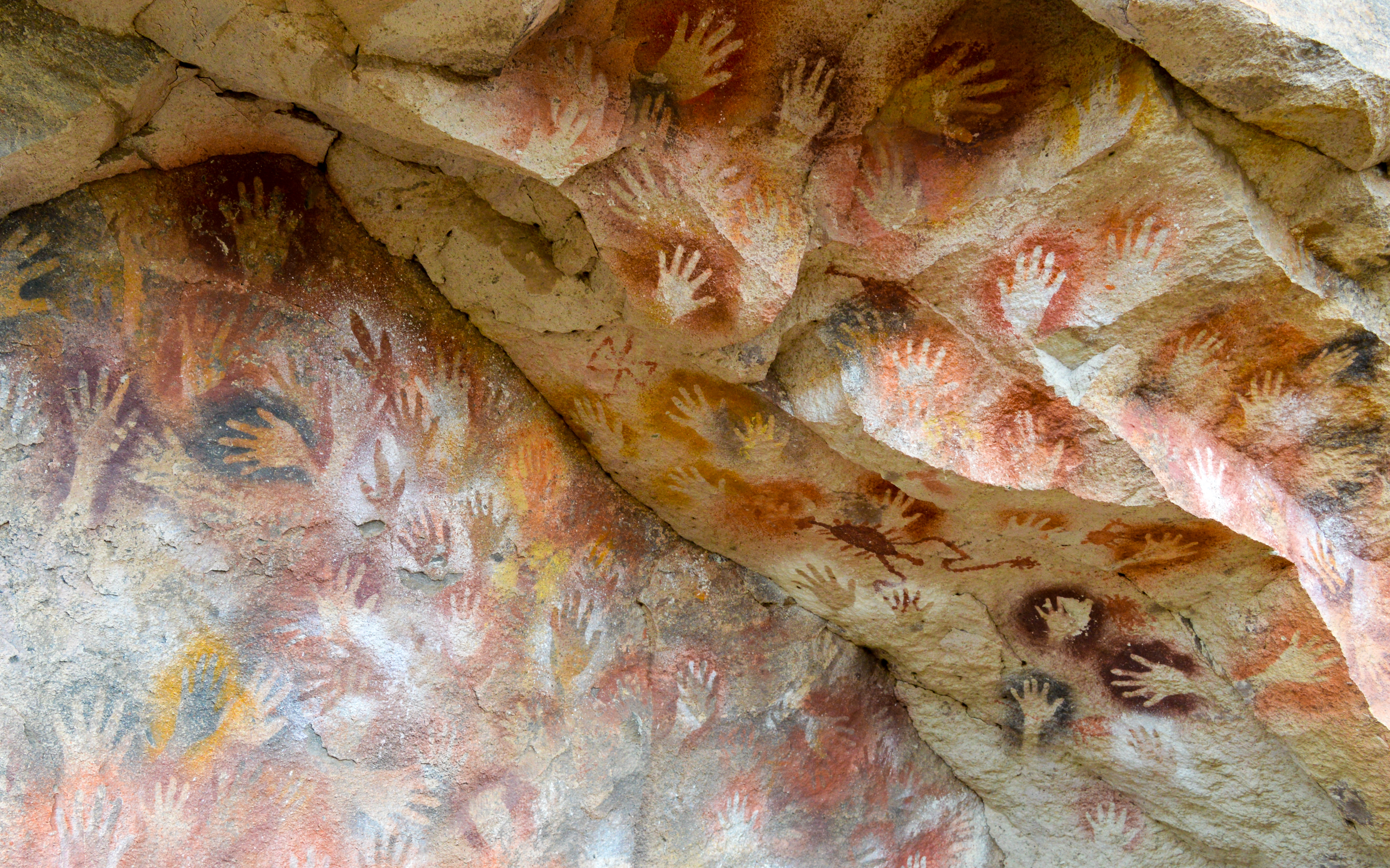 Tijdens onze mini roadtrip bezochten we ook de Queva de las Manos, waar je handafdrukken van meer dan 10000 jaar oud kan bekijken. Om deze te bereiken, moesten we wel eventjes een ravijn doorsteken omdat we anders enkele uren moesten omrijden met de bus. Deze manier van “grotbezoek” was wel ideaal: de grot is immers niet zo heel groot dat ze uren omrijden zou rechtvaardigen. In combi met de wandeling door de kloof was dat wel tof: je gaat immers een beetje op avontuur. Zeker wanneer je gids, zoals de onze, de trap naar boven niet meteen vindt en je dan maar een steile helling opklimt 🙂