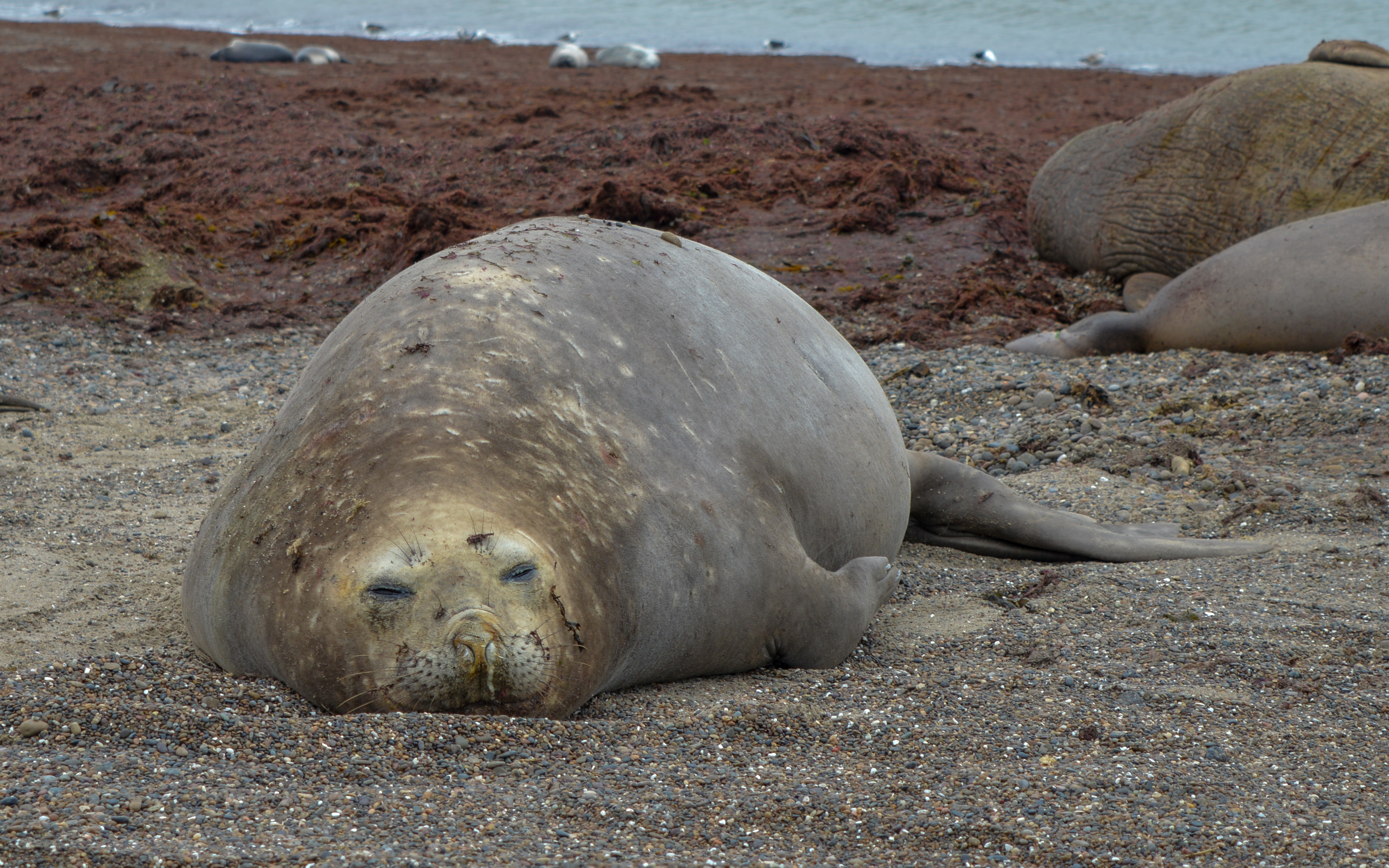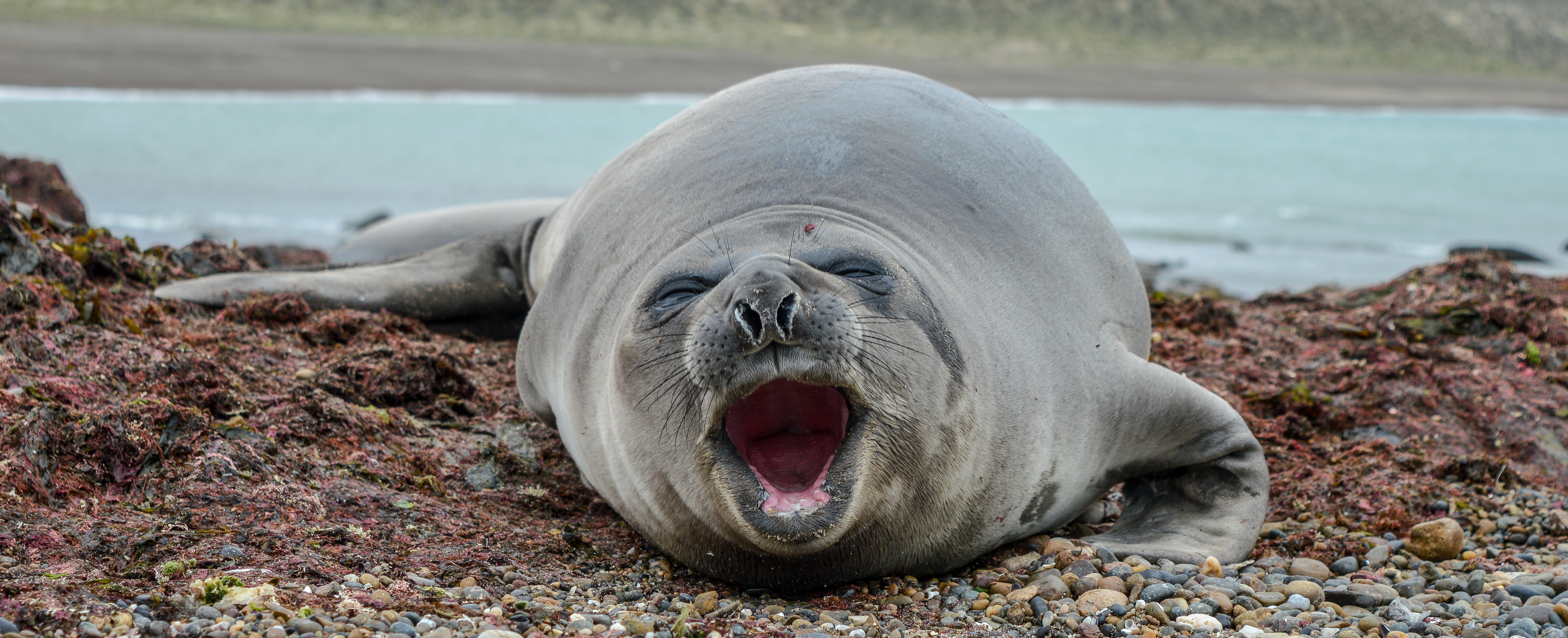 Daar ontmoetten we Hugo en Carlos, onze Argentijnse gids en chauffeur, die ons de komende 5 dagen op sleeptouw zouden nemen met een busje. We kregen al meteen een verrassing voorgeschoteld: het weer bleek niet ideaal om walvissen te gaan spotten, en dus kon die geplande activiteit niet doorgaan. Gelukkig hadden de mannen iets anders in petto: we gingen immers zeeolifanten van dichtbij bekijken!