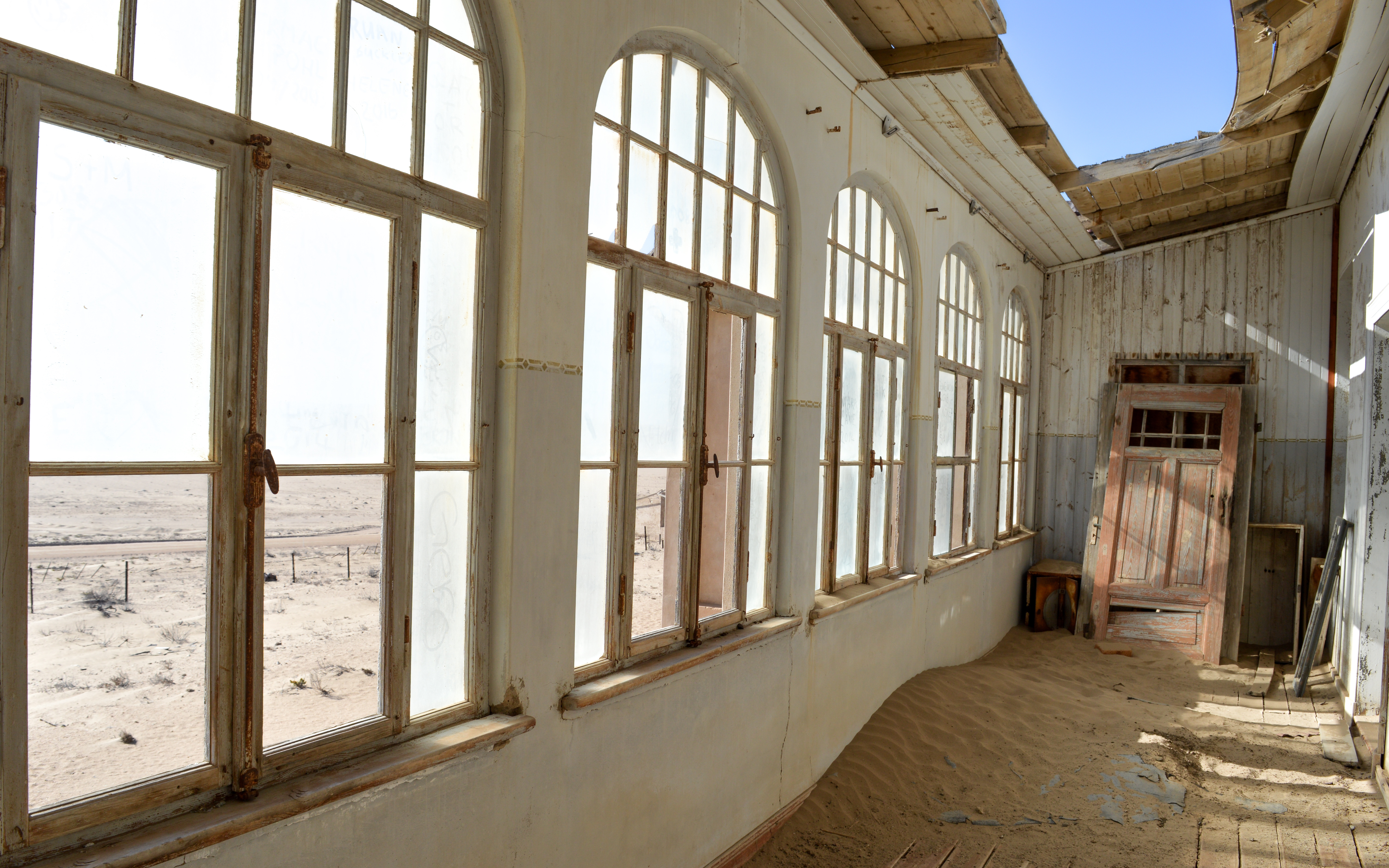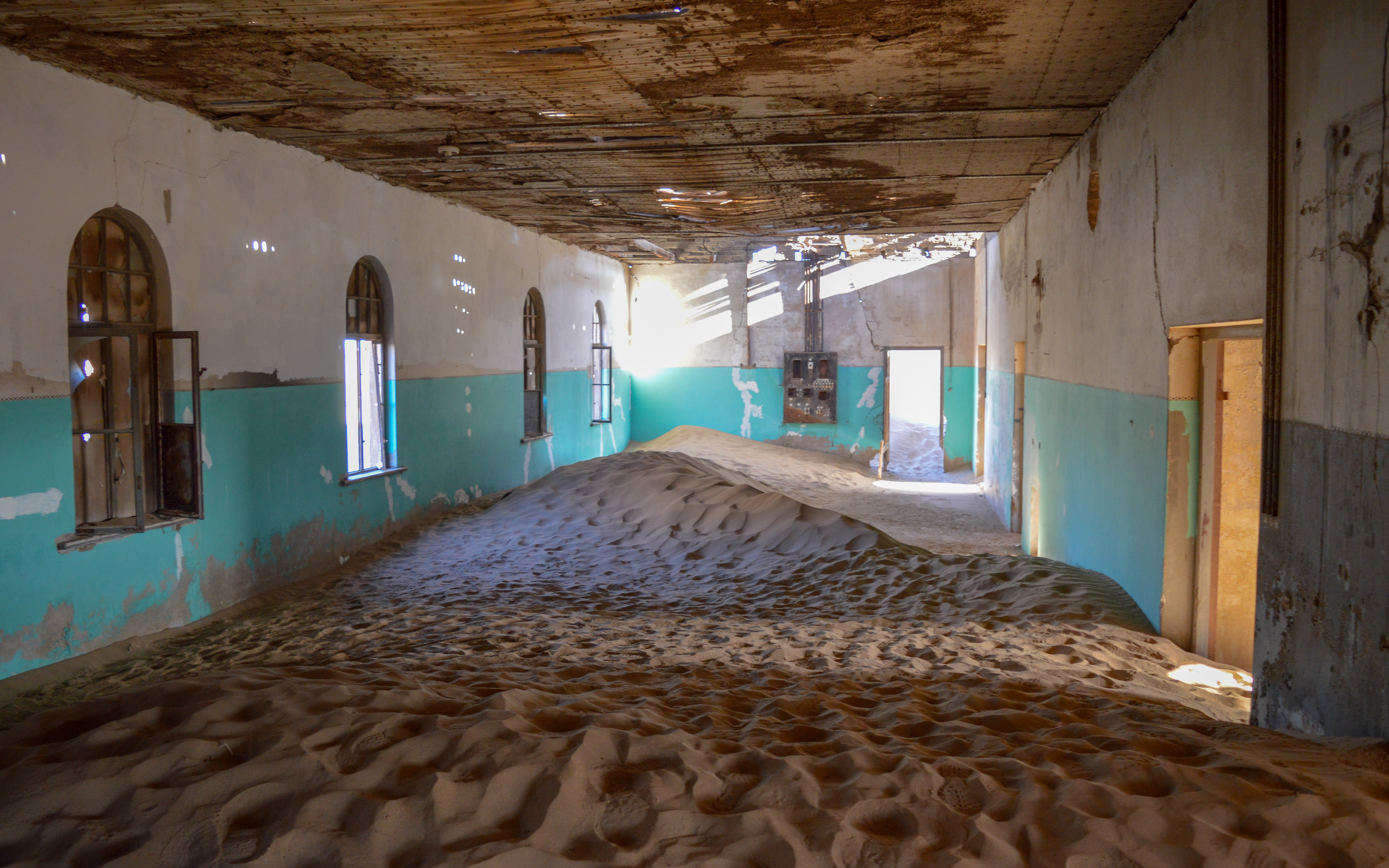 Natuurlijk hebben mensen in de diamantbusiness ook een onderkomen nodig en zo ontstond Kolmanskop. Tot op de dag van vandaag kan je de huizen bezoeken. En ook het ziekenhuis, de school, het theater en de bowlingbaan zijn nog steeds te bezoeken, want de inwoners hadden er natuurlijk ook hun sociaal leven. De gids vertelde ook al lachend dat de vrouw die de winkel uitbaatte, de meest invloedrijke persoon uit het stadje was. Zij was immers degene die bepaalde zaken kon laten importeren uit Duitsland. Als je als inwoner dus iets miste, moest je bij haar zijn.