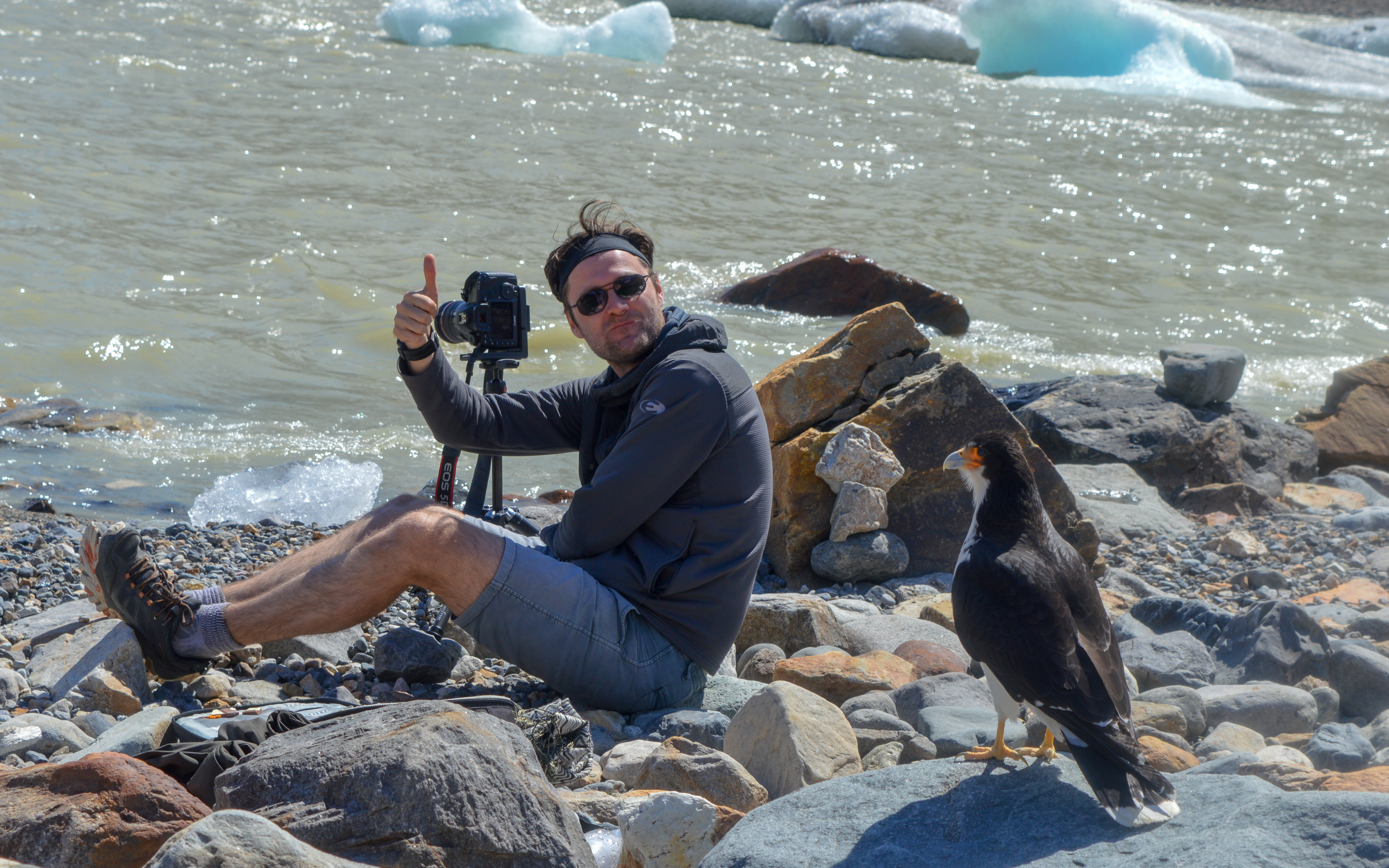 Op onze eerste volledige dag daar, trokken we naar de Laguna Torre. Je wandelt wel wat op en af, maar het uitzicht verandert achter elke bocht. We waren trouwens van bij het vertrek al superhappy: Frits was zichtbaar zonder wolken! Wat waren wij chansaars. Eens aangekomen aan het meer, was het tijd voor de lunch. We hadden jammer genoeg al snel door dat het brood uit de supermarkt echt niet minder droog en vies wordt als het al een tijdje belegd in een rugzak gezeten heeft. Gelukkig was er afleiding door Lowie, een curieuze cara cara die maar al te graag model kwam staan voor foto’s. Een beetje eng en ook wel supercool, zo’n roofvogel op minder dan 2 meter afstand!