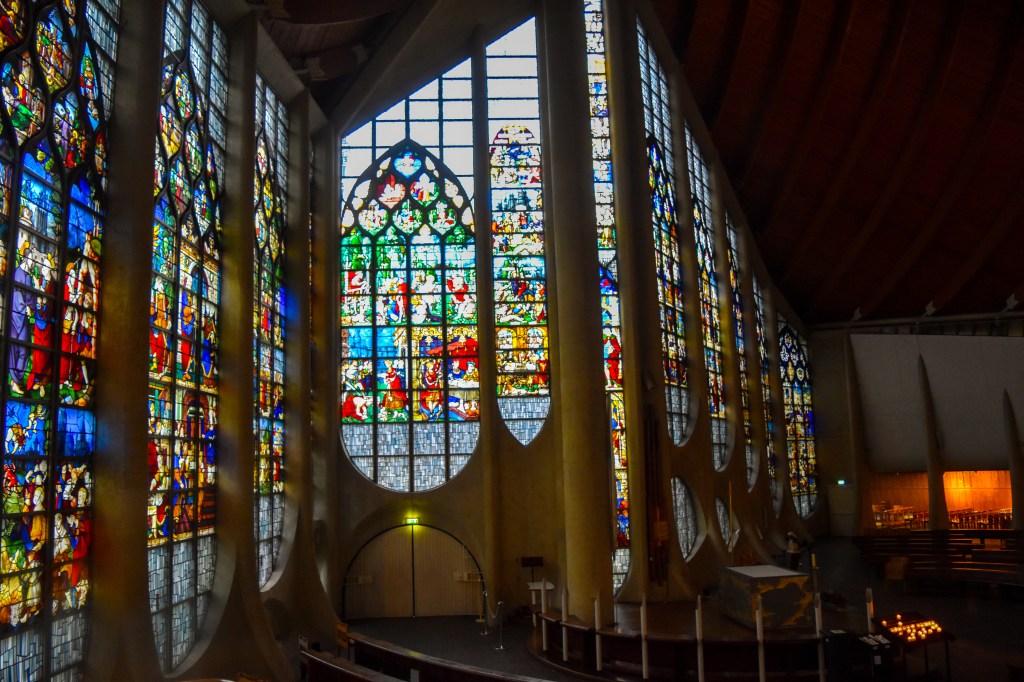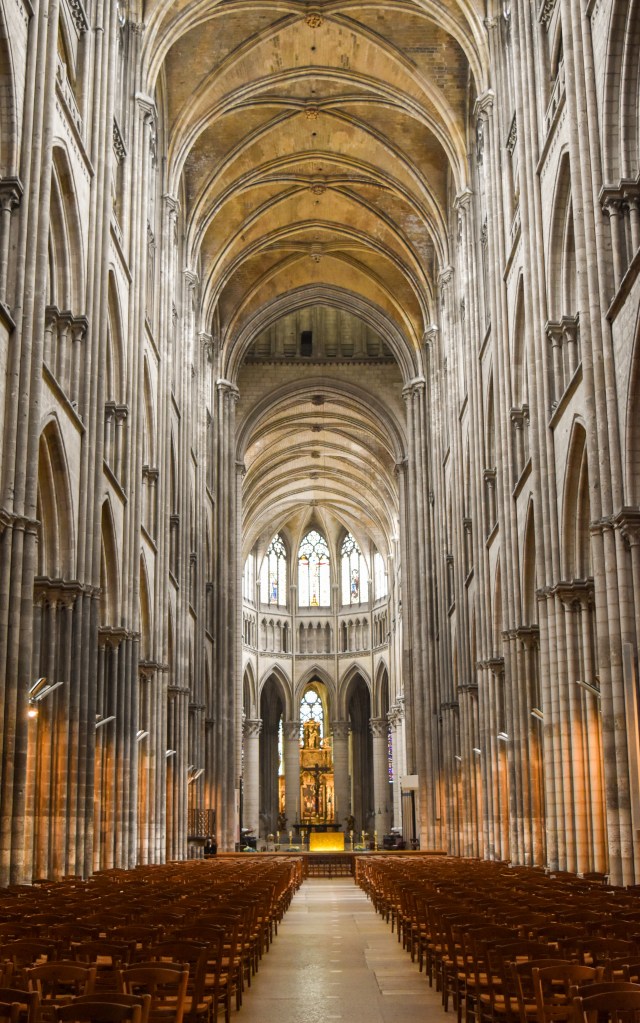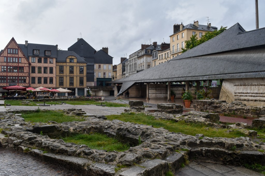 Mits mondmasker kan je ook heel wat dingen bezoeken: de kathedraal en de Jeanne d’Arc Historial bijvoorbeeld. Rouen en Jeanne zijn aan elkaar gelinkt aangezien zij hier op de brandstapel gezet werd in 1431. Op het plein waar dit gebeurde, de Place du Vieux Marché, vind je tot op de dag van vandaag nog restanten terug van de oude kerk en de schandpaal. Daarnaast is er nu ook de Église de Jeanne d’Arc terug te vinden, die wel de moeite is om eens te bezoeken. Zowel binnen als buiten wijkt deze kerk af van de “gewone” architectuur die je overal in Europa terug kan vinden door de lange uitlopers van het dak en de volledige glas-in-lood muur.
