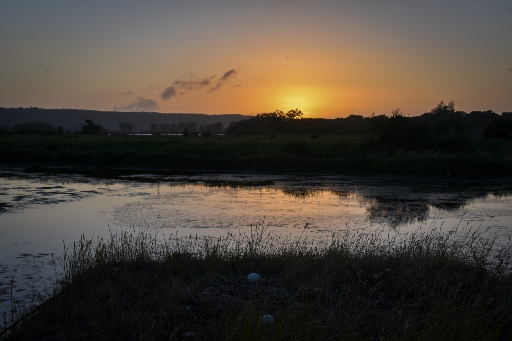 Onze wishlist voor een goede plek was ook wel vrij stevig: je moet de auto goed kunnen wegzetten, ergens afgelegen, liefst aan proper water om te zwemmen en ook nog met een mooi uitzicht. Het water om in te zwemmen hebben we moeten opgeven, maar we vonden wel een supermooi plekje aan een vijver. Tijd om het flesje wijn te ontkurken, te picknicken en Bernardus te planten bij zonsondergang aangezien hij zijn nut bewezen had. En na een bewogen eerste dag napraten met een wijntje en een prachtige zonsondergang : wat wil een mens nog meer?